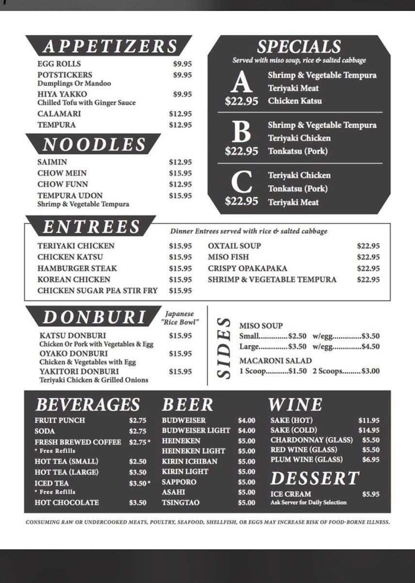 Ichiban Restaurant & Sushi Menu
